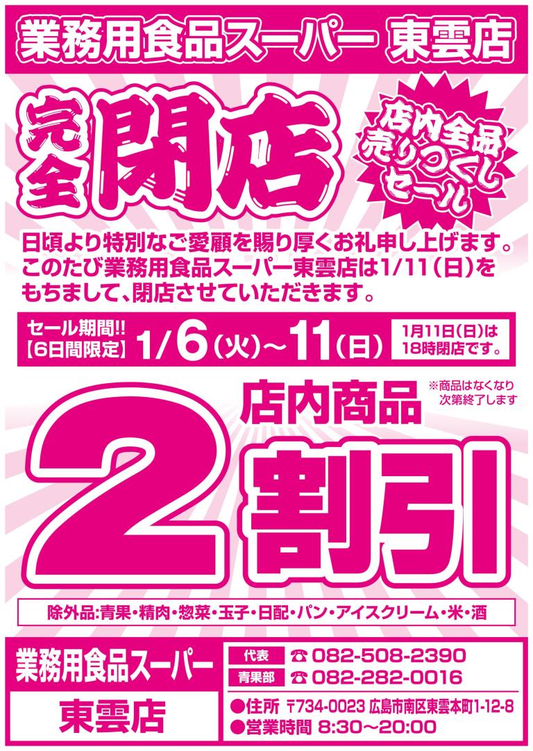 東雲店閉店チラシ 1月6日〜11日
